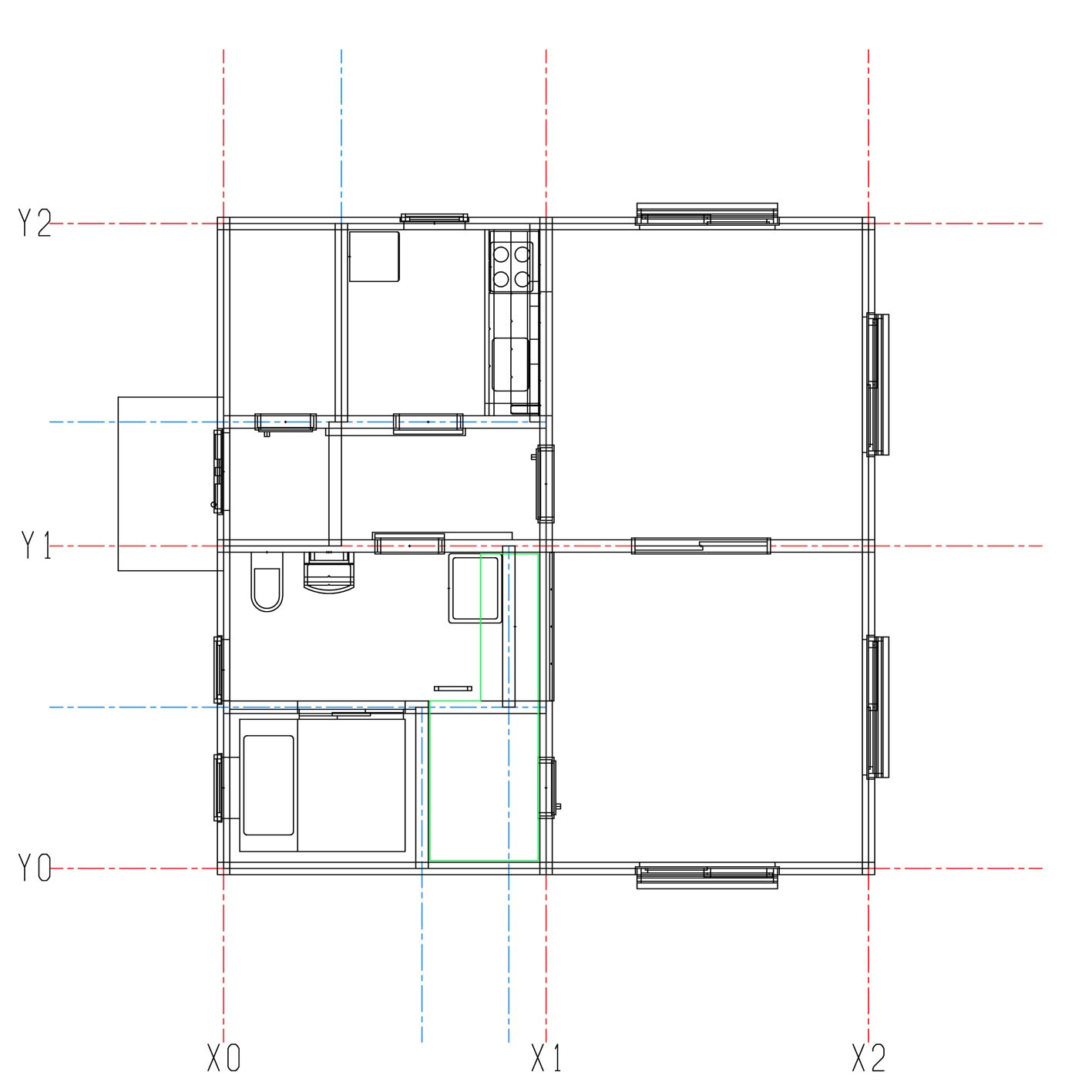 { 移動 } 正面(Y1):-75 側面(Y0):-3975 中央(Y1):-3975 { 複写 } Y0,Y2通り { ミラー複写 } X2通り |