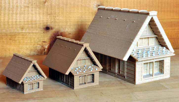 水車小屋・合掌造り・曲り家など、日本の古民家3D模型の、印刷の準備~組立~完成までを掲載