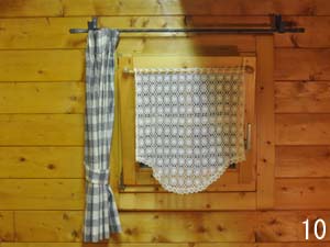 - ルブナーブロックハウスでは、レースのカーテン(取付器具含む)と、鉄を加工した(アイアンアートカーテレールがをプションとして輸入すしたう